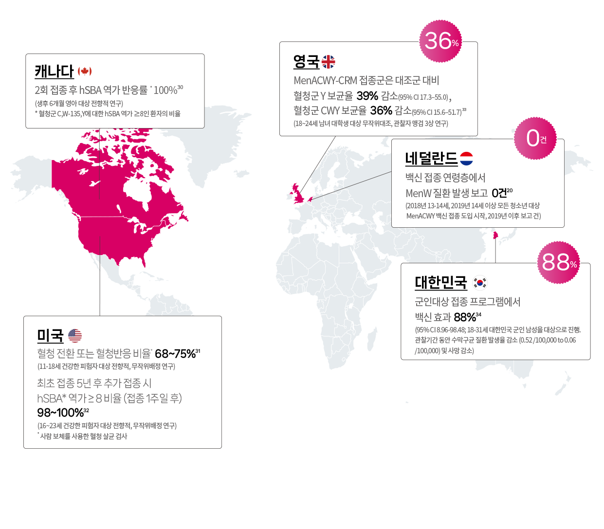 * 단, 생후 2개월~생후 23개월의 영아에서 Neisseria meningitidis A군의 효능효과는 입증되지 않음