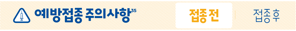 - 질병관리청. 예방접종 주의사항 및 금기사항. Available at https://nip.kdca.go.kr/irhp/infm/goVcntInfo.do?menuLv=1&menuCd=114 Accessed Apr. 2024.